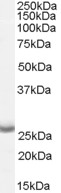 APR12072G (0.05 μg/ml) staining of Human Brain (Cerebral Cortex) lysate (35 μg protein in RIPA buffer). Primary incubation was 1 hour. Detected by chemiluminescence. |