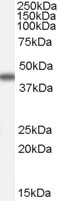 AMM04884G (0.01 μg/ml) staining of Human Duodenum lysate (35 μg protein in RIPA buffer). Primary incubation was 1 hour. Detected by chemiluminescence.