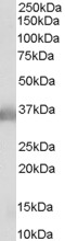 AMM04888G (0.1 μg/ml) staining of Human Brain lysate (35 μg protein in RIPA buffer). Primary incubation was 1 hour. Detected by chemiluminescence. |