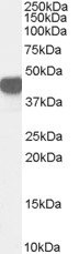 AMM04896G (0.03 μg/ml) staining of Human Kidney lysate (35 μg protein in RIPA buffer). Primary incubation was 1 hour. Detected by chemiluminescence.
