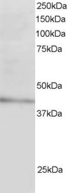 AMM04897G staining (3 μg/ml) of Human Liver lysate (RIPA buffer, 30 μg total protein per lane). Primary incubated for 1 hour. Detected by western blot using chemiluminescence. |