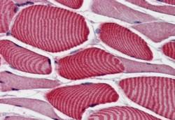 APR16220G (3.8 μg/ml) staining of paraffin embedded Human Skeletal Muscle. Steamed antigen retrieval with citrate buffer pH 6, AP-staining. |