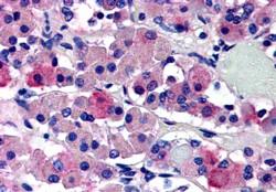 APR12076G (5 μg/ml) staining of paraffin embedded Human Anterior Pituitary Gland. Steamed antigen retrieval with citrate buffer pH 6, AP-staining.