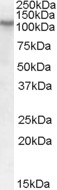 APR16227G (0.3 μg/ml) staining of Human Ileum lysate (35 μg protein in RIPA buffer). Primary incubation was 1 hour. Detected by chemiluminescence. |