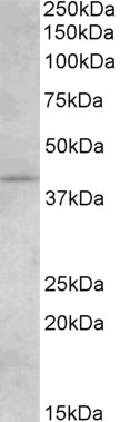 AMM05453G (1.5 μg/ml) staining of Human Brain (Hippocampus) lysate (35 μg protein in RIPA buffer). Primary incubation was 1 hour. Detected by chemiluminescence. |