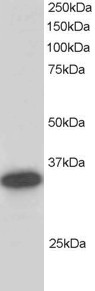 AMM04926G staining (0.2 μg/ml) of Human Liver lysate (RIPA buffer, 30 μg total protein per lane). Primary incubated for 1 hour. Detected by western blot using chemiluminescence.