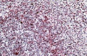 APR16246G (3.8 μg/ml) staining of paraffin embedded Human Spleen. Steamed antigen retrieval with citrate buffer pH 6, AP-staining. |