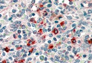 APR16247G(4 μg/ml) staining of paraffin embedded Human Spleen. Steamed antigen retrieval with citrate buffer pH 6, AP-staining.