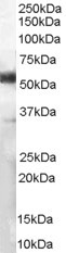 APR16247G (1 μg/ml) staining of Human Lymph Node lysate (35 μg protein in RIPA buffer). Primary incubation was 1 hour. Detected by chemiluminescence. |