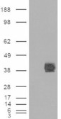 APR16248G (0.3 μg/ml) staining of K562 lysate (35 μg protein in RIPA buffer). Primary incubation was 1 hour. Detected by chemiluminescence.