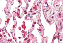APR16232G (5 μg/ml) staining of paraffin embedded Human Lung. Steamed antigen retrieval with citrate buffer pH 6, AP-staining. |
