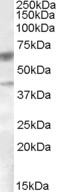 AMM04956G (0.5 μg/ml) staining of Human Liver lysate in the third lane (35 μg protein in RIPA buffer). Primary incubation was 1 hour. Detected by chemiluminescence.