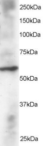 APR16272G staining (2 μg/ml) of Human Heart lysate (RIPA buffer, 30 μg total protein per lane). Primary incubated for 12 hour. Detected by western blot using chemiluminescence. |