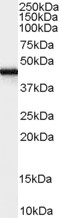 APR12095G (0.03 μg/ml) staining of Human Brain (frontal Cortex) lysate (35 μg protein in RIPA buffer). Primary incubation was 1 hour. Detected by chemiluminescence. |