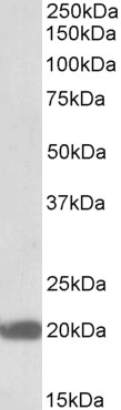 AMM04981G (0.05 μg/ml) staining of Human Placenta lysate (35 μg protein in RIPA buffer). Primary incubation was 1 hour. Detected by chemiluminescence.