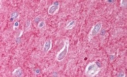 APR12119G (2.5 μg/ml) staining of paraffin embedded Human Brain (Cerebral Cortex). Steamed antigen retrieval with citrate buffer pH 6, AP-staining. |