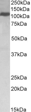 AMM05943G (0.5 μg/ml) staining of lysate of cell line Jurkat (35 μg protein in RIPA buffer). Primary incubation was 1 hour. Detected by chemiluminescence.
