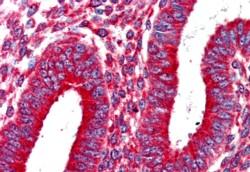 AMM05943G (2.5 μg/ml) staining of paraffin embedded Human Uterus. Steamed antigen retrieval with citrate buffer pH 6, AP-staining. Please note this data was obtained with a previous batch. |