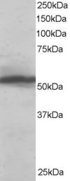 APR16316G staining (0.1 μg/ml) of Hela lysate (RIPA buffer, 35 μg total protein per lane). Primary incubated for 1 hour. Detected by western blot using chemiluminescence.