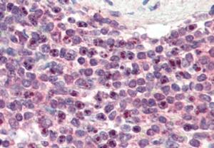 AMM05049G (3 μg/ml) staining of paraffin embedded Human Spleen. Steamed antigen retrieval with citrate buffer pH 6, AP-staining.