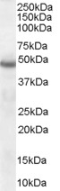 APR12136G (1 μg/ml) staining of Human Brain lysate (35 μg protein in RIPA buffer). Primary incubation was 1 hour. Detected by chemiluminescence. |