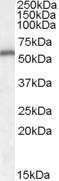 APR12137G (0.1 μg/ml) staining of Human Cerebellum lysate (35 μg protein in RIPA buffer). Primary incubation was 1 hour. Detected by chemiluminescence. |