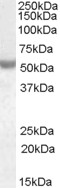 APR12144G (0.01 μg/ml) staining of Human Breast Cancer lysate (35 μg protein in RIPA buffer). Primary incubation was 1 hour. Detected by chemiluminescence.