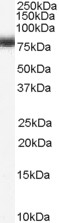 AMM05948G staining (0.03 μg/ml) of Mouse Brain lysate (RIPA buffer, 30 μg total protein per lane). Primary incubated for 1 hour. Detected by western blot using chemiluminescence. |