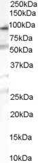 AMM05067G (1 μg/ml) staining of human duodenum lysate (35 μg protein in RIPA buffer). Primary incubation was 1 hour. Detected by chemiluminescence. |