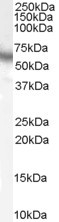 AMM05069G staining (0.05 μg/ml) of Human Placenta lysate (RIPA buffer, 35 μg total protein per lane). Primary incubated for 1 hour. Detected by western blot using chemiluminescence.