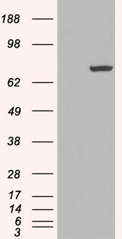 HEK293 overexpressing PADI4 (RC206501) and probed with AMM05070G (mock transfection in first lane), tested by Origene. |