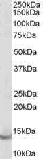 APR12157G (0.1 μg/ml) staining of Human Brain lysate (35 μg protein in RIPA buffer). Primary incubation was 1 hour. Detected by chemiluminescence.