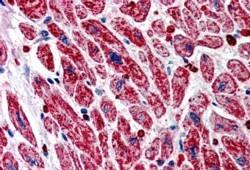 APR16361G (5 μg/ml) staining of paraffin embedded Human Heart. Steamed antigen retrieval with citrate buffer pH 6, AP-staining. |