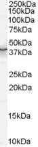 APR12168G (0.3 μg/ml) staining of mouse brain lysate (35 μg protein in RIPA buffer). Primary incubation was 1 hour. Detected by chemiluminescence. |