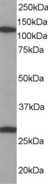 APR16374G staining (0.1 μg/ml) of Human Brain lysate (RIPA buffer, 35 μg total protein per lane). Primary incubated for 1 hour. Detected by western blot using chemiluminescence. |