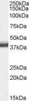 APG03367G (0.1 μg/ml) staining of Mouse Kidney lysate (35 μg protein in RIPA buffer). Primary incubation was 1 hour. Detected by chemiluminescence.