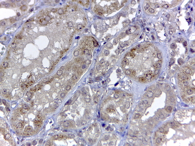 APG03367G (2 μg/ml) staining of paraffin embedded Human Kidney. Steamed antigen retrieval with citrate buffer pH 6, HRP-staining. |
