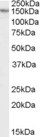 APR12172G (0.3 μg/ml) staining of Human Brain (Cerebellum) lysate (35 μg protein in RIPA buffer). Primary incubation was 1 hour. Detected by chemiluminescence. |
