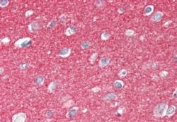 AMM05130G (2.5 μg/ml) staining of paraffin embedded Human Cerebral Cortex. Steamed antigen retrieval with citrate buffer pH 6, AP-staining. |