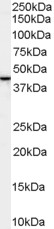 APR12180G staining (1 μg/ml) of Human Breast lysate (RIPA buffer, 30 μg total protein per lane). Primary incubated for 1 hour. Detected by western blot using chemiluminescence. |