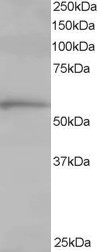 APR16412G staining (1 μg/ml) of Human Lung lysate (RIPA buffer, 35 μg total protein per lane). Primary incubated for 1 hour. Detected by western blot using chemiluminescence.