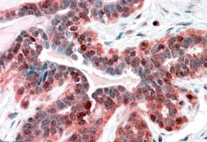 AMM07904G (3.8 μg/ml) staining of paraffin embedded Human Breast Steamed antigen retrieval with citrate buffer pH 6, AP-staining. |