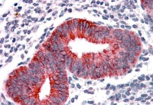 AMM08480G (3.8 μg/ml) staining of paraffin embedded Human Uterus. Steamed antigen retrieval with citrate buffer pH 6, AP-staining. |