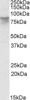 APG01597G (0.3 μg/ml) staining of Human Cerebellum lysate (35 μg protein in RIPA buffer). Primary incubation was 1 hour. Detected by chemiluminescence. |