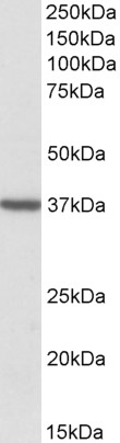 APR10511G (2 μg/ml) staining of Human Frontal Cortex lysate (35 μg protein in RIPA buffer). Primary incubation was 1 hour. Detected by chemiluminescence. |