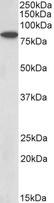 APG02203G (1 μg/ml) staining of Human Skeletal Muscle lysate (35 μg protein in RIPA buffer). Primary incubation was 1 hour. Detected by chemiluminescence.
