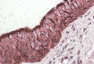 APG01755G (3.8 μg/ml) staining of paraffin embedded Human Lung. Steamed antigen retrieval with citrate buffer pH 6, AP-staining. |