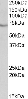 APG02273G (0.1 μg/ml) staining of HeLa lysate (35 μg protein in RIPA buffer). Primary incubation was 1 hour. Detected by chemiluminescence. |