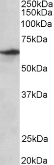 APR10113G (0.3 μg/ml) staining of Human Testis lysate (35 μg protein in RIPA buffer). Primary incubation was 1 hour. Detected by chemiluminescence. |