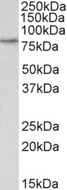 APG02792G (1 μg/ml) staining of HeLa lysate (35 μg protein in RIPA buffer). Primary incubation was 1 hour. Detected by chemiluminescence. |